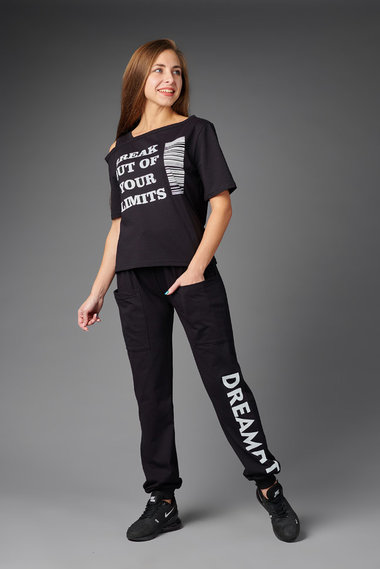 Фото товара 18160, черный костюм: футболка и брюки
