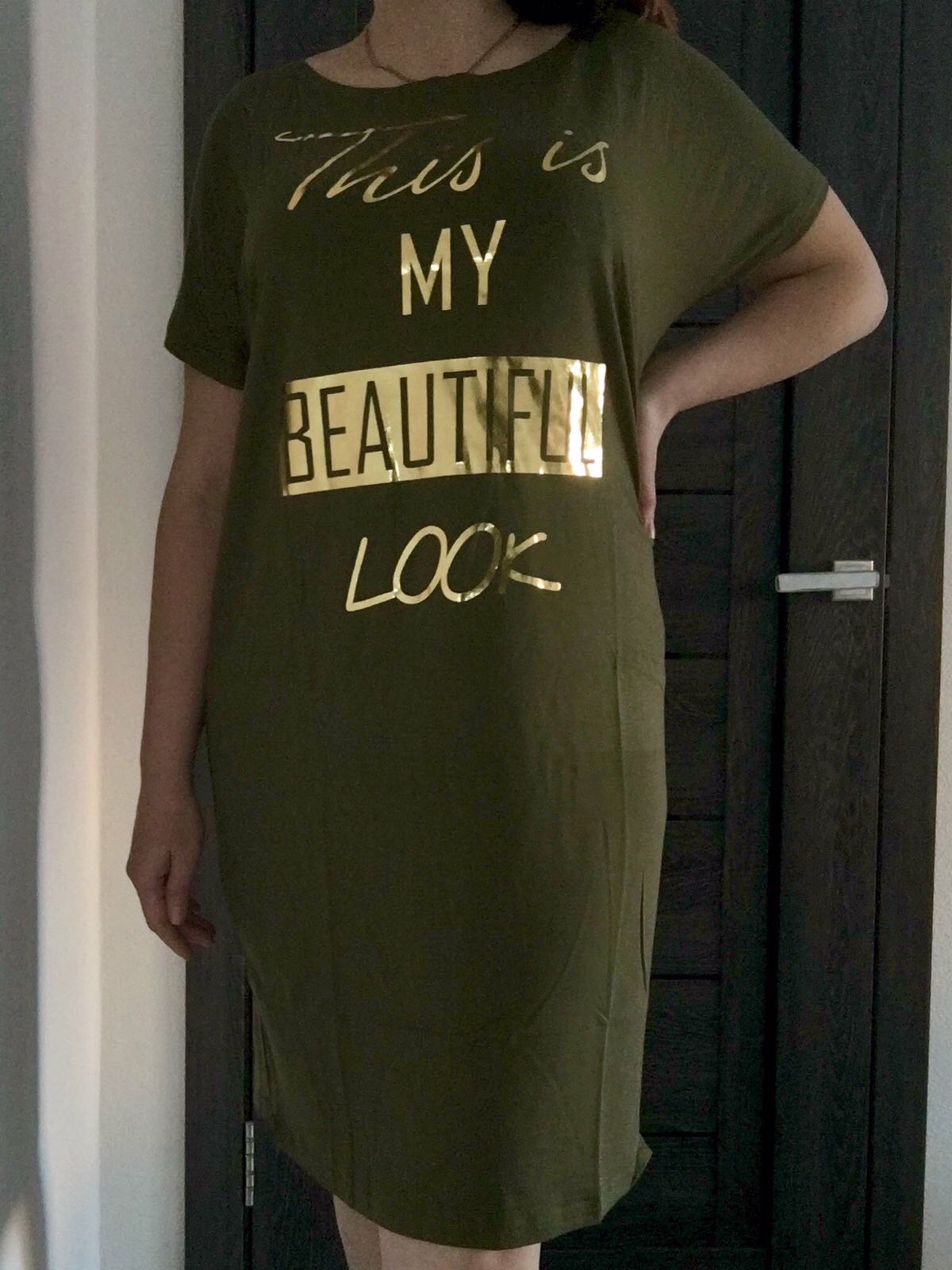 Фото товара 20759, свободное платье цвета хаки